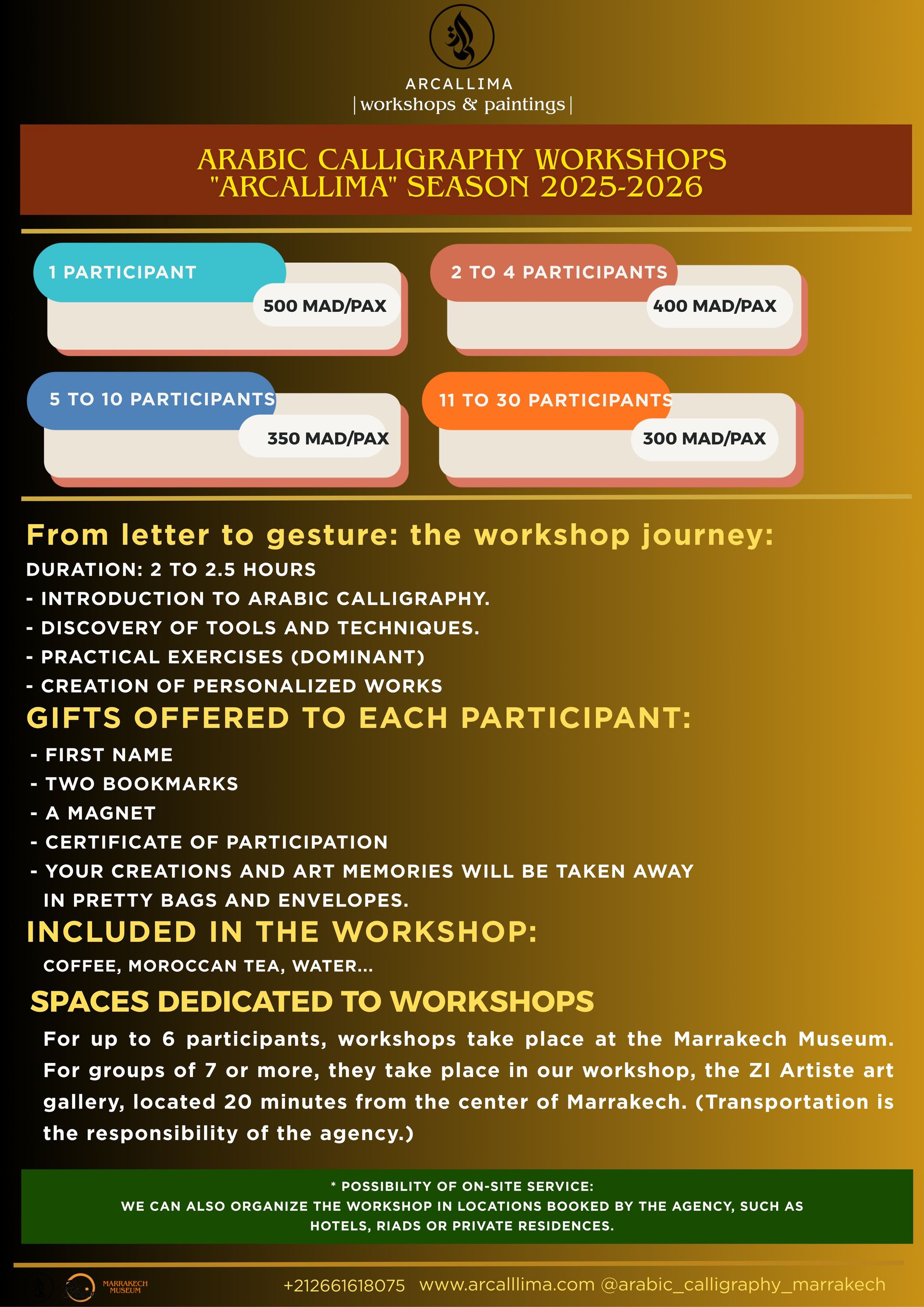 #EssaidZizi #Arcallima #ArtWorkshop #CulturalExperience #CreativeGift #WeddingWorkshop #EventCalligraphy #CorporateEvent #HandmadeArt #ArabicArt #CalligraphyArt #TraditionalArt #UniqueGift #ArtInMarrakech #CraftWorkshop #CulturalHeritage #PersonalizedArt