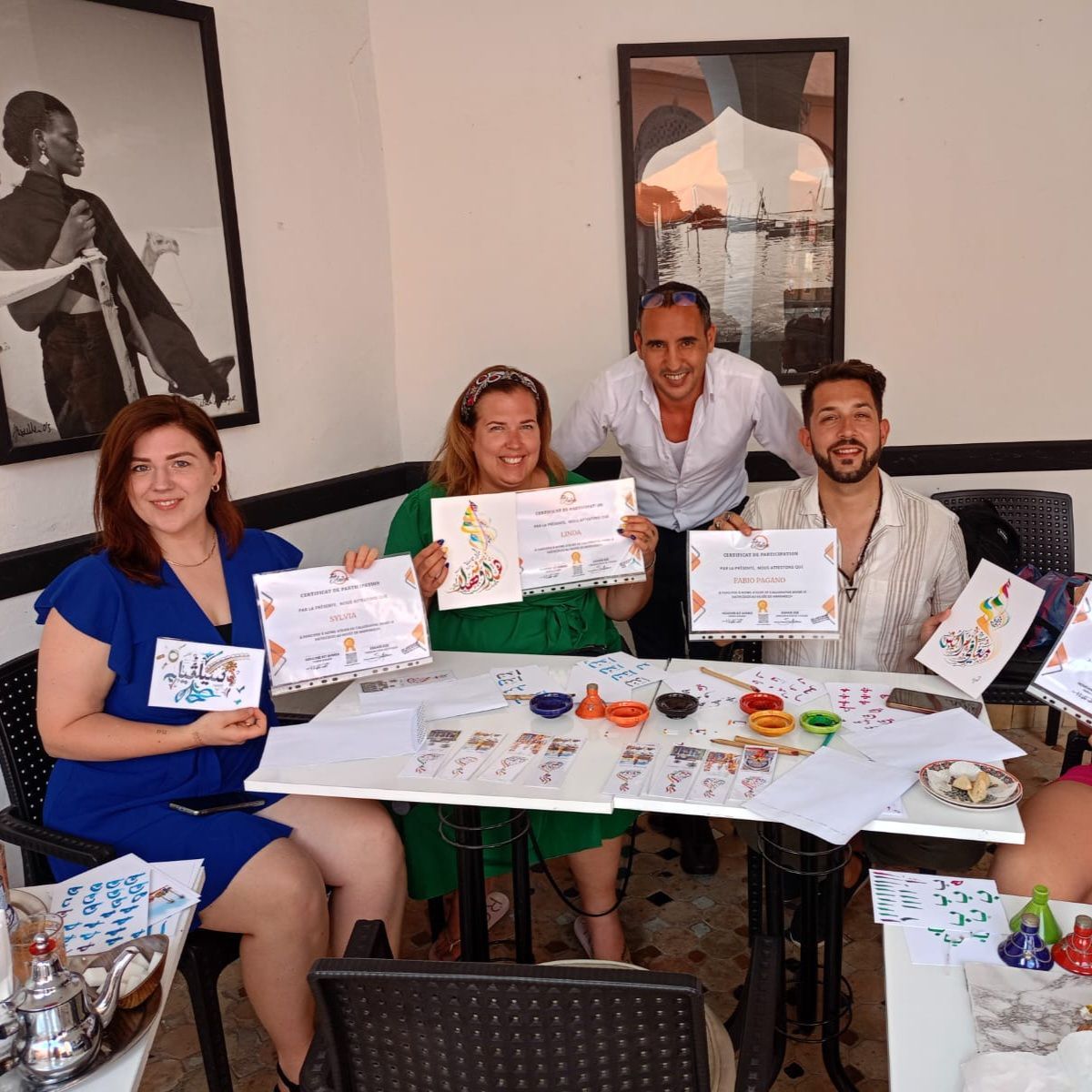 Ofrecemos talleres de caligrafía árabe para personas individuales, familias, grupos y eventos. Pueden visitarnos en el Museo de Marrakech, o también podemos desplazarnos a su residencia o al lugar donde organicen su evento. Contáctenos por WhatsApp o correo electrónico. Estamos disponibles 7/7 para garantizarles una experiencia artística y cultural rica, auténtica y memorable.